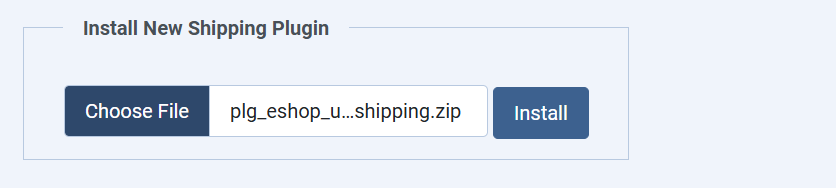 After purchasing EShop USPS Shipping plugin, you will received the package plg_eshop_uspsshipping.zip. Please login to the back-end of your site, then go to EShop -> Plugins -> Shipping, scroll mouse down to the bottom at Install New Shipping Plugin section, select the package plg_eshop_uspsshipping.zip to install.
