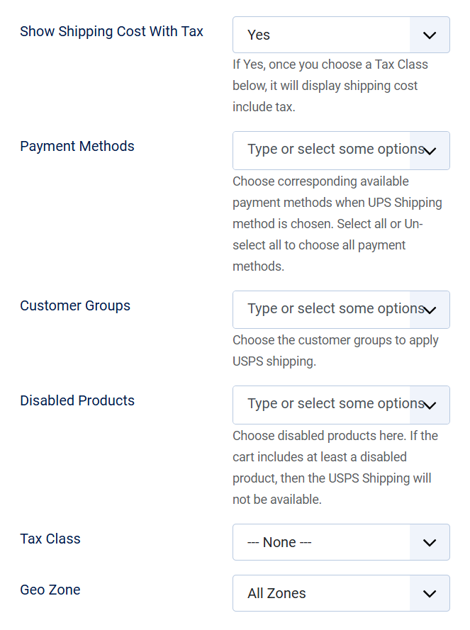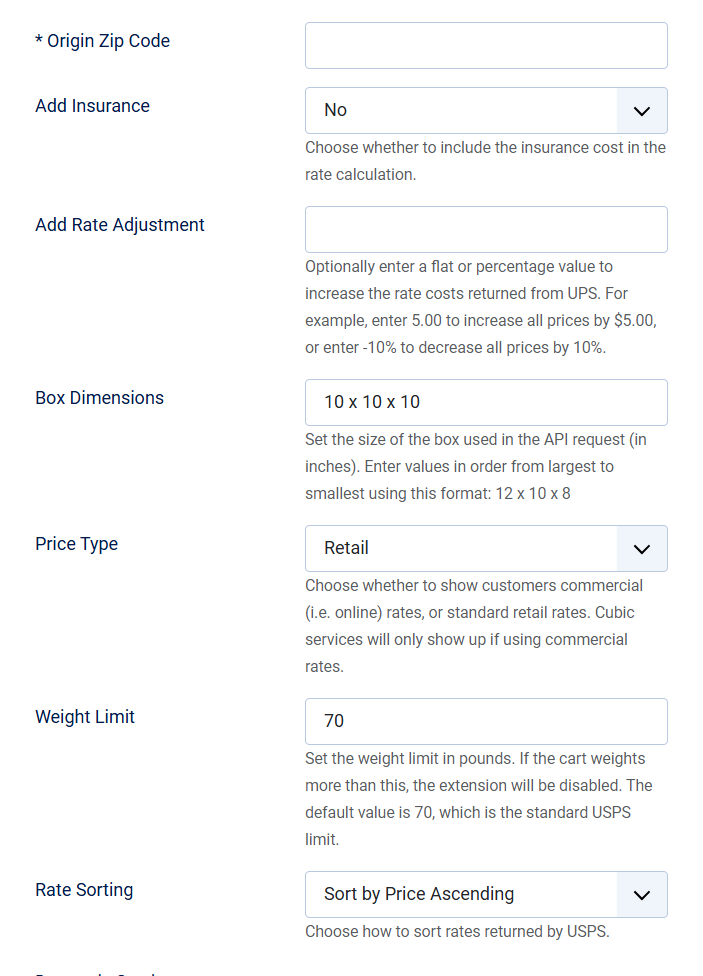 2. Next, you can enter the Origin Zip Code of your store, enter and select other options as intro text.