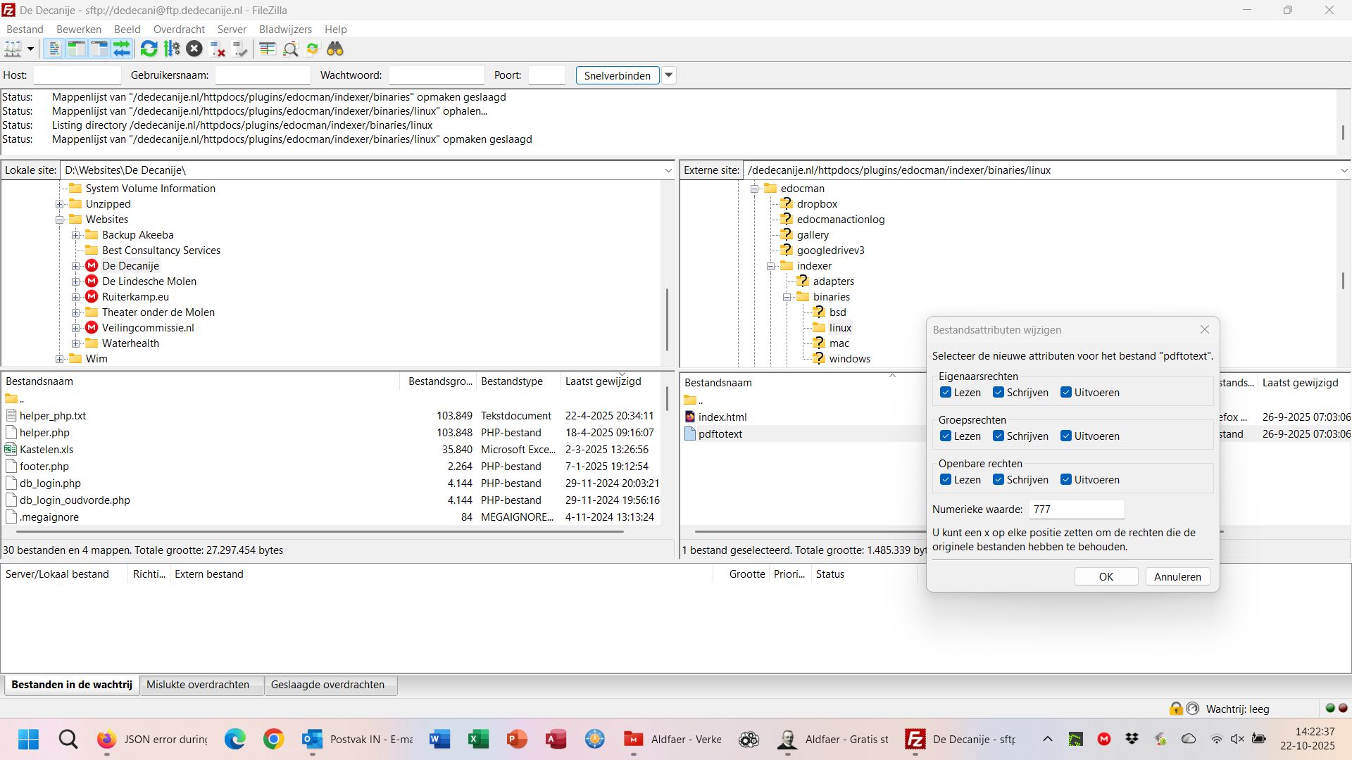 sh: 1: /var/www/vhosts/dedecanije.nl/httpdocs/plugins/edocman/indexer/binaries/linux/pdftotext: Permission denied