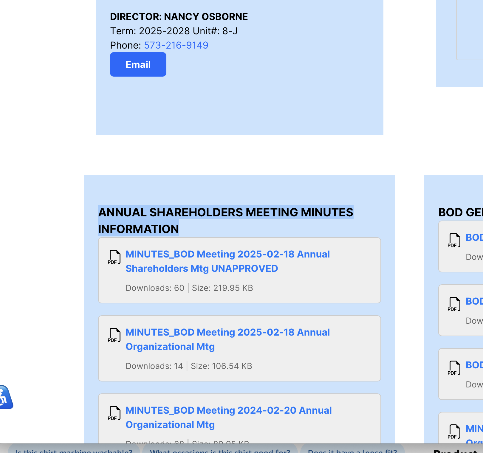 Click on the documents in the left column titled: ANNUAL SHAREHOLDERS MEETING MINUTES INFORMATION (see attached screenshot)