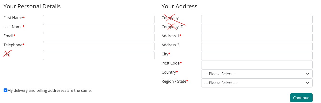 REmove fields from checkout