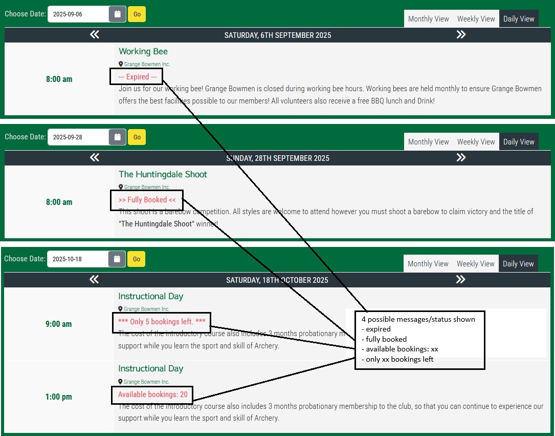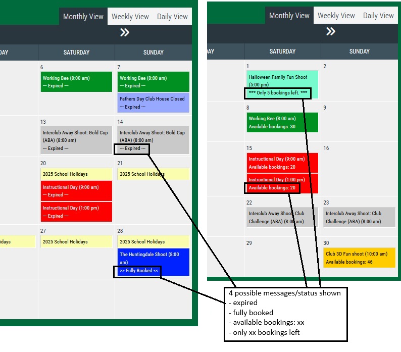 Hi there, we have been interested in displaying past events as Expired, and also if an event is/has been fully booked out on the main monthly calendar.