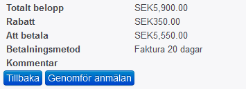 Screenshot 2 is the summary on the frontend. I don't see the tax here. The price without tax is 5.900 SEK (350 SEK is early bird fee). Shouldn't the price be 5.900 SEK * 1,06? (if you are not an early bird?