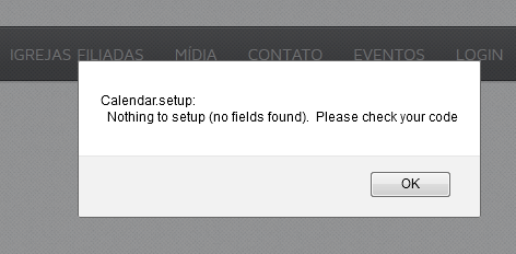 version 2.5.9, installed the mini calendar at home, when click on a date with event will see a pop-up window with the message "calendar.setup: Nothing to setup (no fields found); Please check your code".
