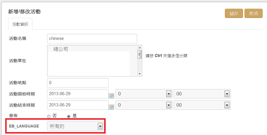 1. at first , I add event at Chinese site , and language choose "all"