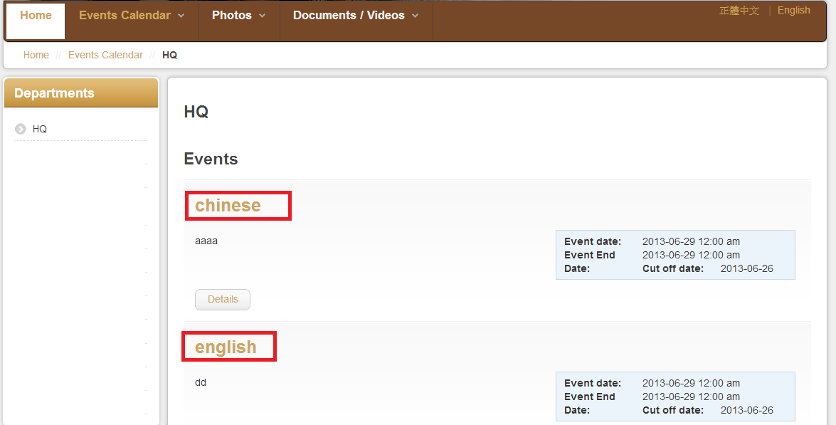 4. at the category ,at English site, I can see events - chinese & english