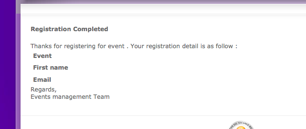 I have the system in test mode but when I register, I do not get a complete confirmation page. that is to say there is not name, event name or email.