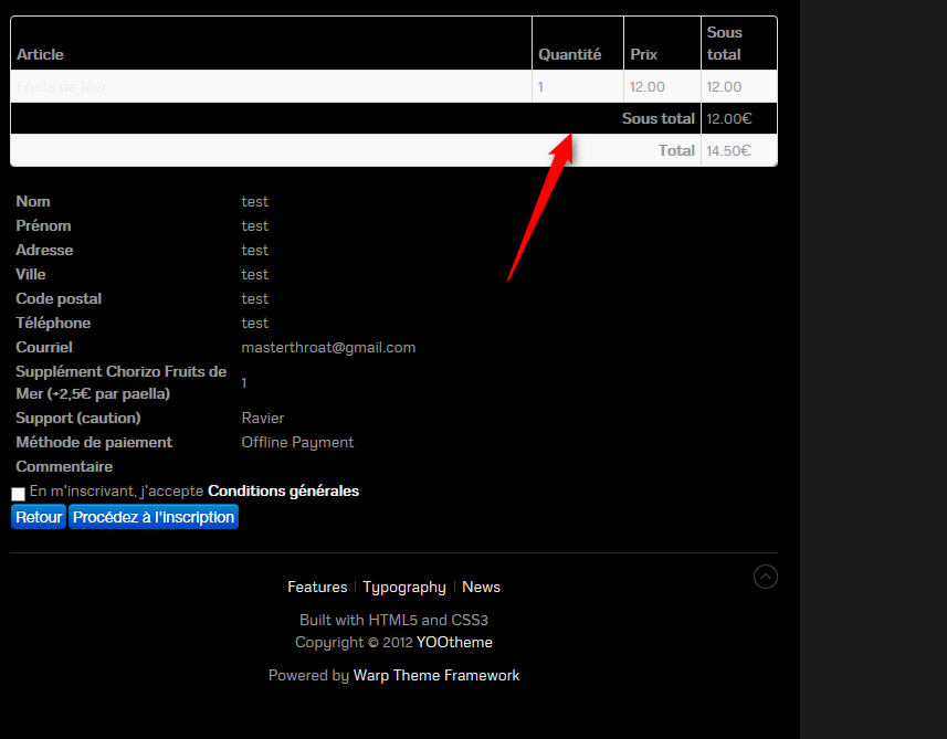 The problem, it only show the value specified by the customer and don't add the amout to the total to pay.