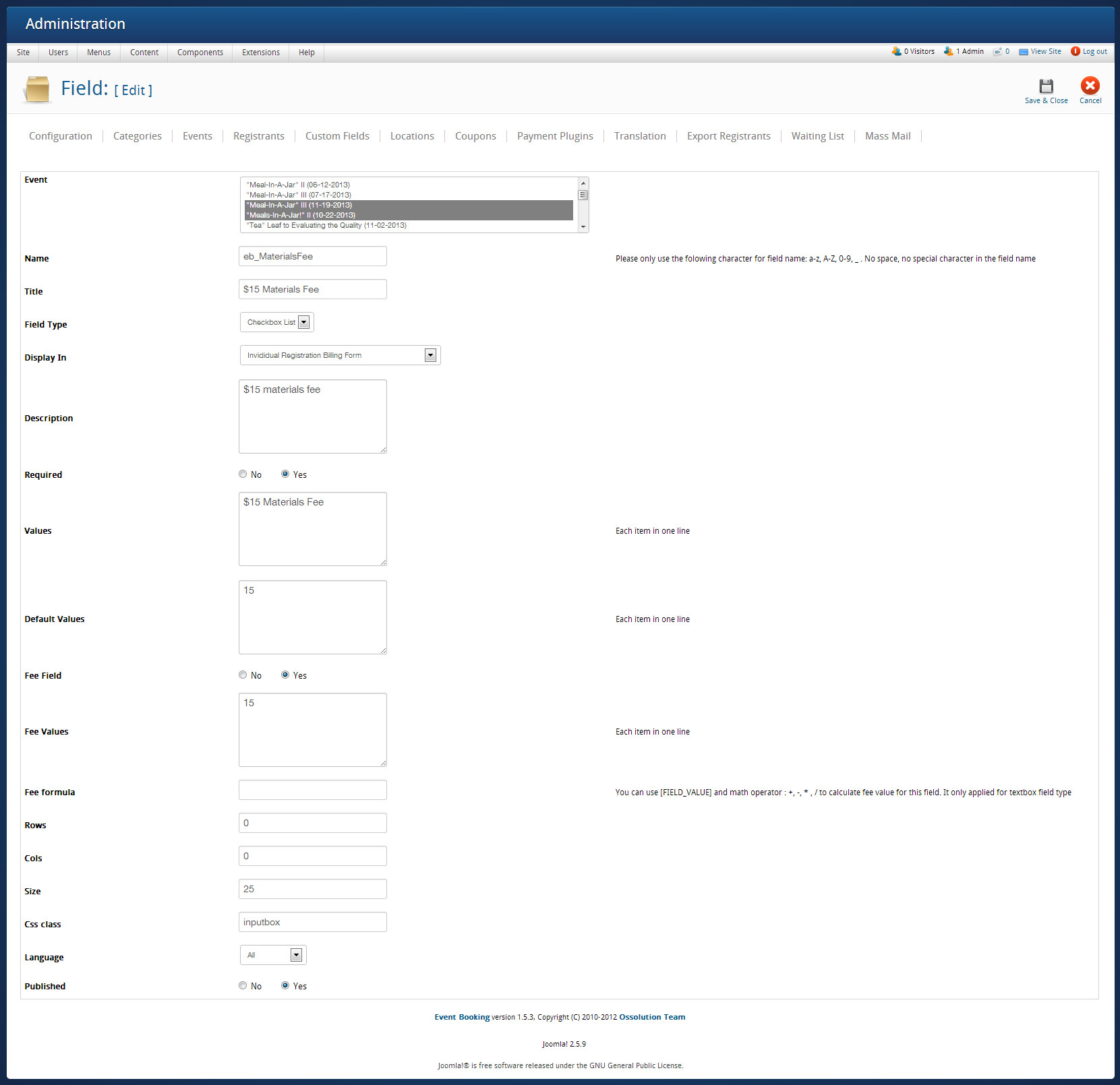 We have a several workshops that require a Materials Fee aside from the actual cost of the workshop. So we set of the materials fees in the Custom Fields.