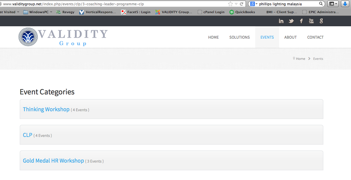 The URL in all screenshots depicts what the link is pointing to, where after the index.php, "events" is the root menu item, "clp" is the event category, and "3-coaching-leader-programme-clp" is the unique event identifier.