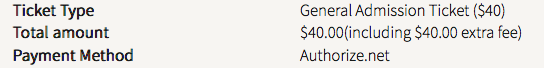 I am using the custom fee fields to have multiple ticket options using a radio button so there are no extra fees, but rather just two choices for ticket prices. How can I remove that text? See screenshot below.