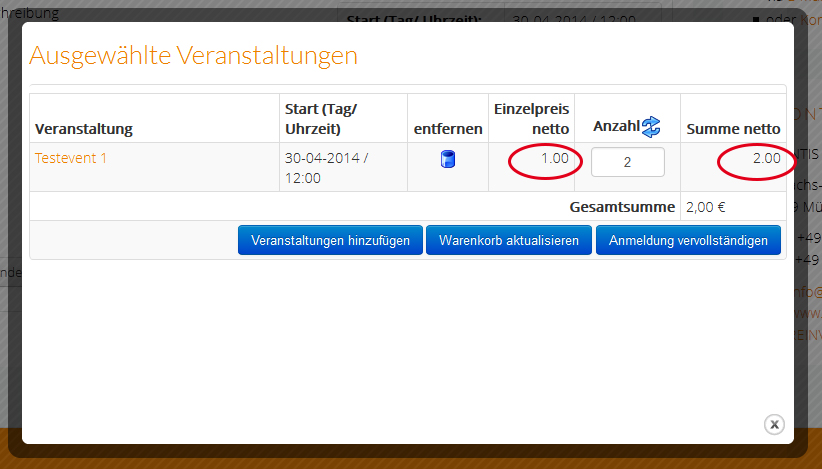 In the configuration of Event Booking I use for decimal point: comma (",").