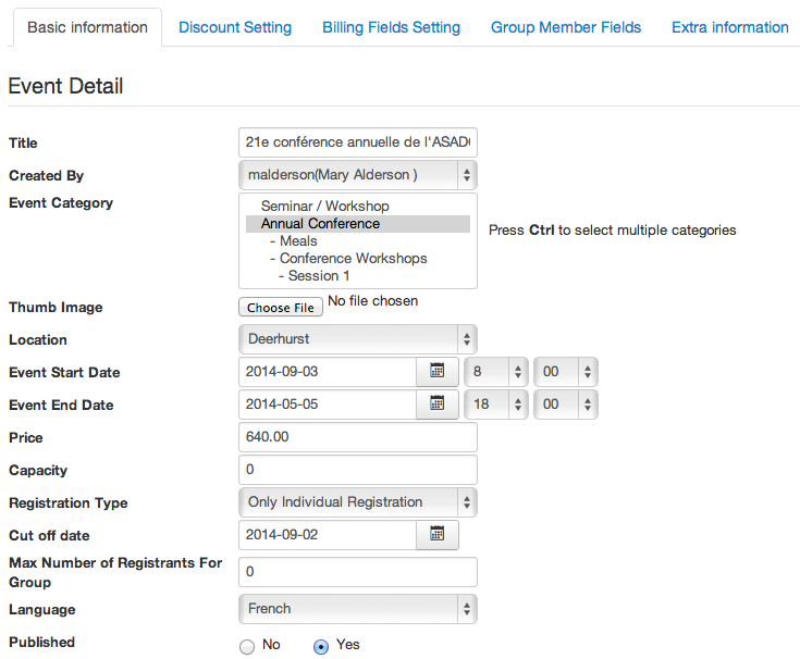 I've created an event in French. I set the language choice to French. I've installed the French language files in both the admin and the general language directories.