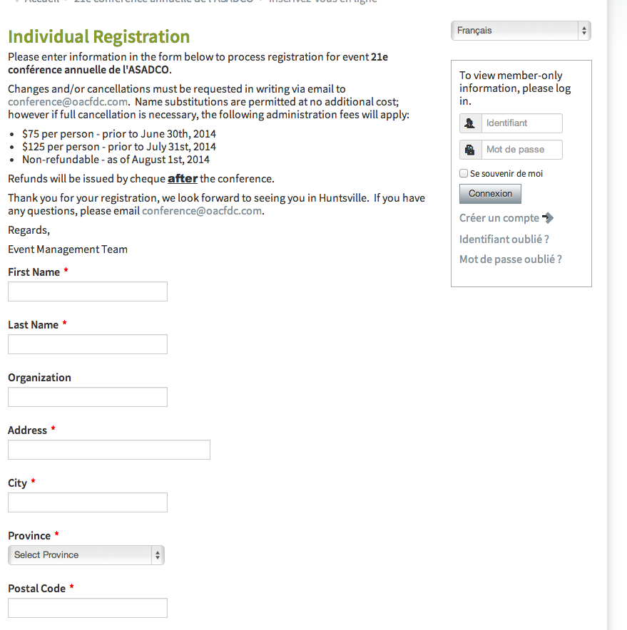 It isn't displaying in French. Any suggestions? (I'm looking at the fields such as First Name, Last Name, etc.)