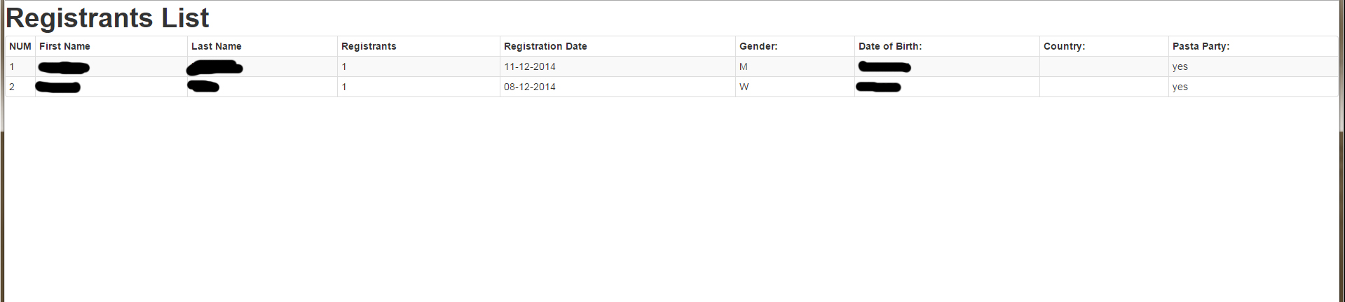 The "Country" field is visible in the registration form, but after registration when I go to the registrant list there are no values for Country column.