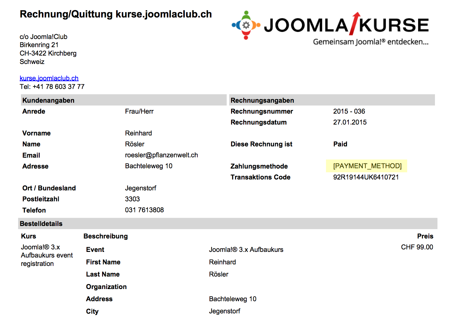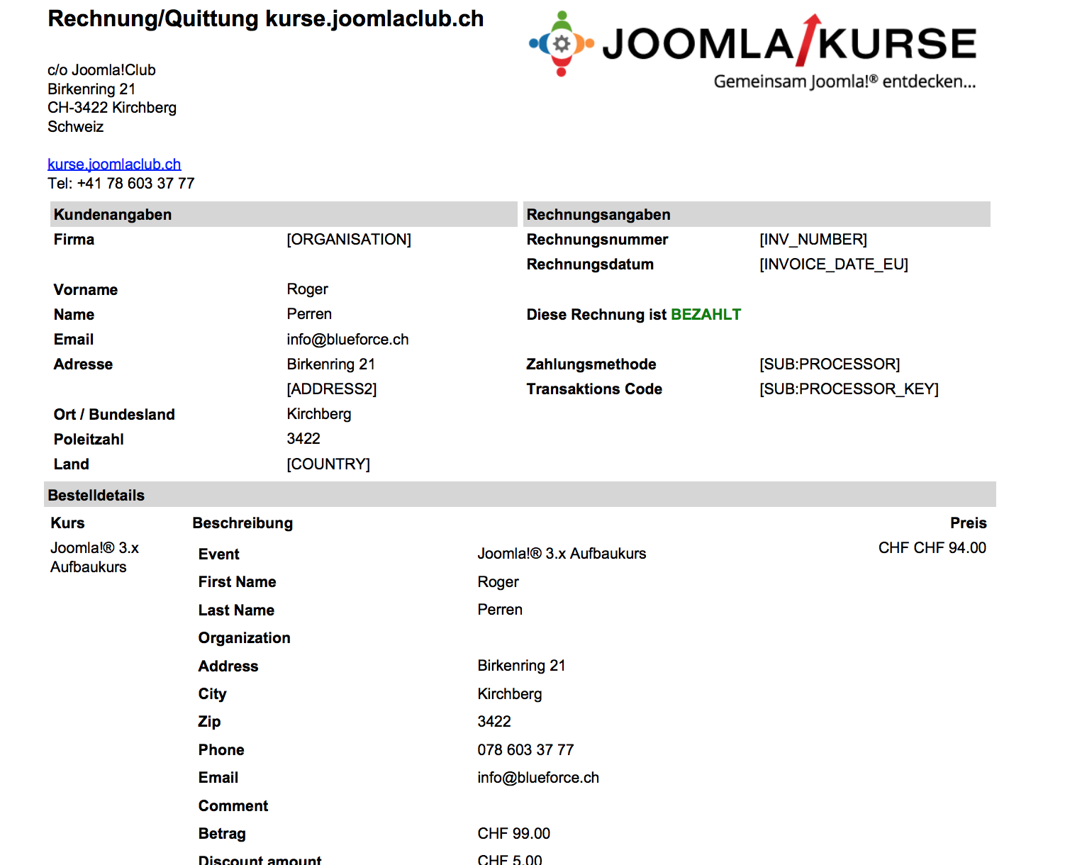 List of available Invoice TAGs was created by joomlaclub