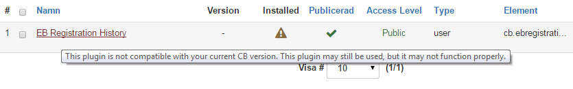 I have CB 2.0.5 install on my J3.3.6 website and added the cb.ebregistrationhistory plugin and it tells me that is is not compatible with my version of CB. Is there an updated version of the this CB plugin?