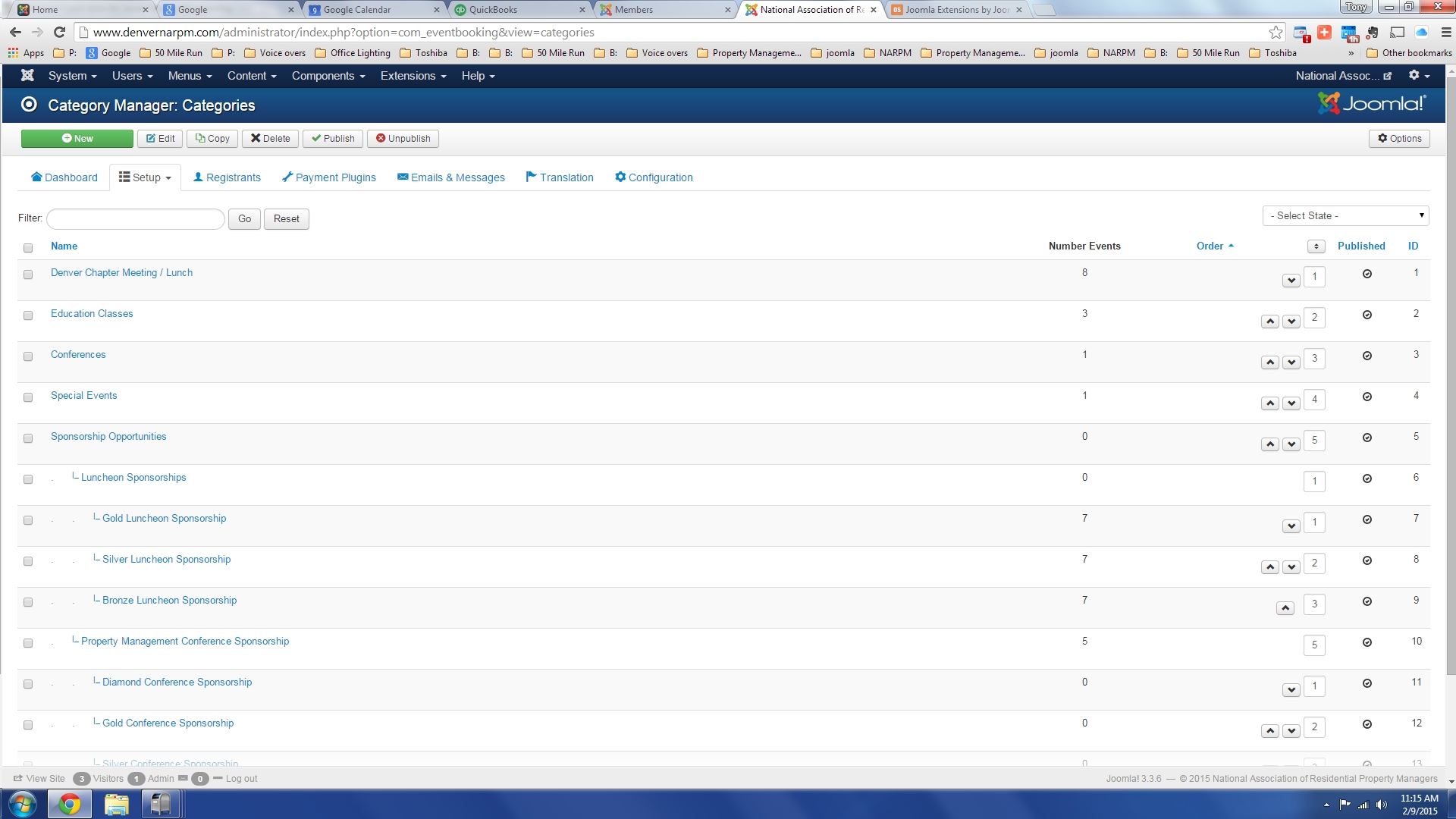 I would like to resort "Property Management Conference Sponsorship" to be listed above "Luncheon Sponsorships" on the front end of the website. There are no arrows to move it up and down and when you type a number in and click "save order" it does not save.