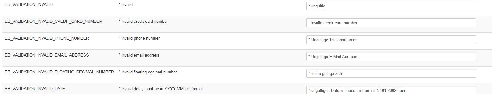 Added: I had a look at the language files in the download of Event Booking. In the German language files, there are three different versions of the language file and all three look different. One is about half the size of the other one. And also the other two are not equal.