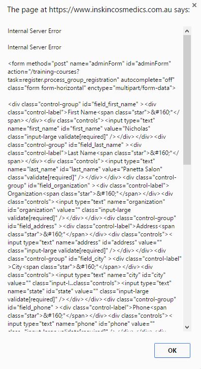 Pop up error - Internal Server Error