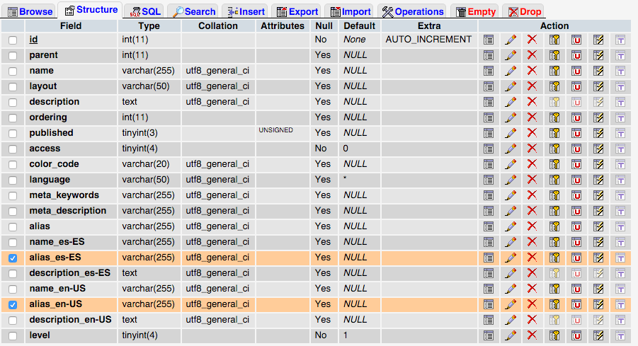 Th SQL statement includes the field alias_es-ES, but the error message is stating the field alias_es is missing. Based on the database this is correct, this field is not present in the database.