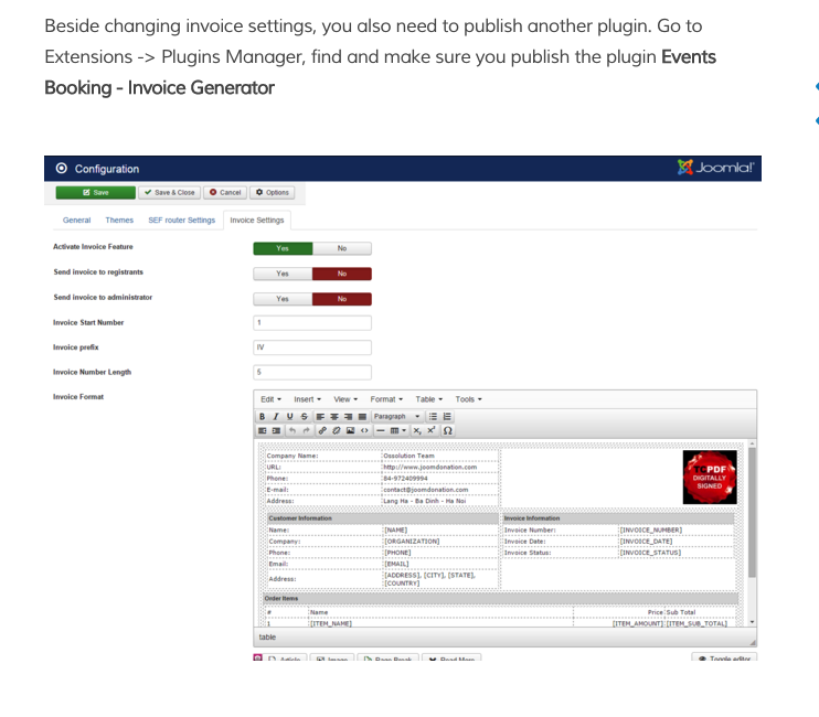 Am I supposed to see some html on the Invoice Setting tab in the Invoice Format? As per your Invoice Integration (see attachment) As there is nothing there that I can adjust.