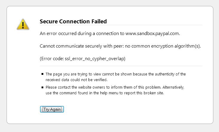 Paypal test mode - Secure Connection Failed was created by Roger D