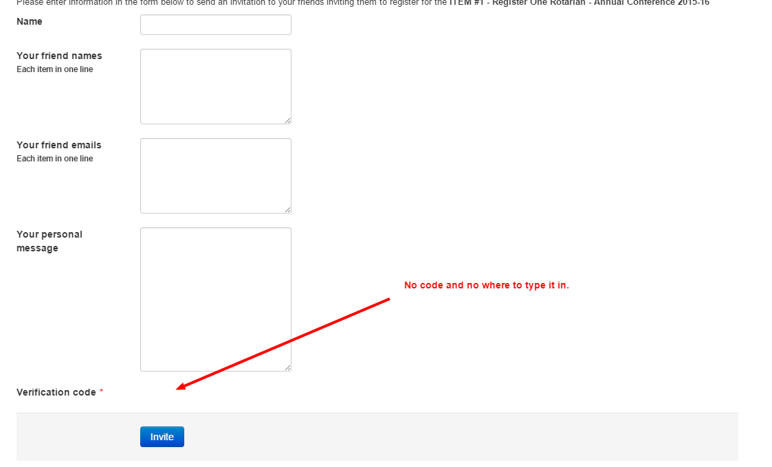 Captcha verification code not showing in "Invite" was created by erixis
