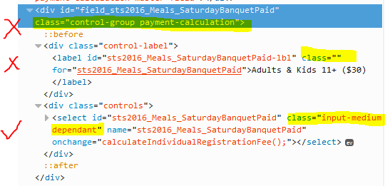 I decided to tag the entire row in case I ever decide to do something with background color / etc. to further differentiate the dependant fields.