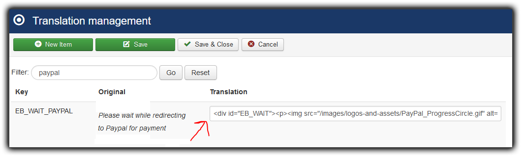 Here's my personal "improved" EB_WAIT_PAYPAL. Go into the Event Booking -> Translation Manager and replace the contents of EB_WAIT_PAYPAL with the following block of code. Feel free to modify it (you'll have to download the images -- PayPal_ProgressCircle.gif and PayPal-acceptance-mark.png -- that I've attached, and adjust the <img src=> paths to where you uploaded the images to on your site).