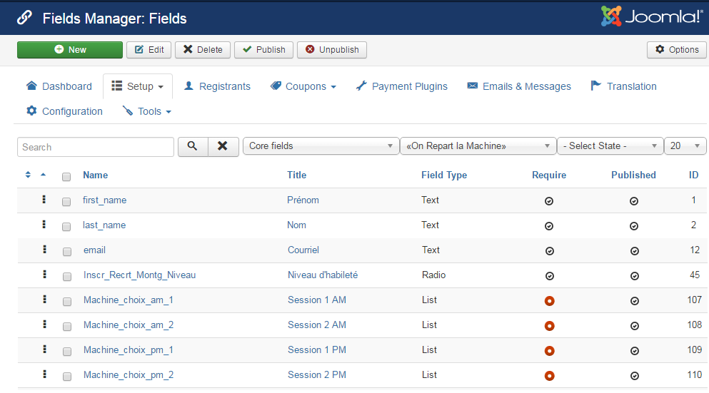 I have an event with multiples list custom fields. All options are quantity limited. The 2 first pictures show user data from database