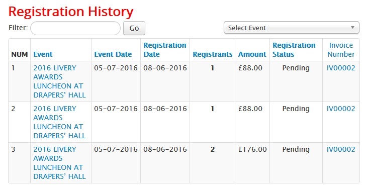 When I look at 'My Event Bookings' it shows the system report "Registration History". The same event is listed three times: once for the group booking and again once each for the two registrants (without showing their names or any other useful details). Basically it just repeats itself three times. See screenshot attached. Invoice also attached.