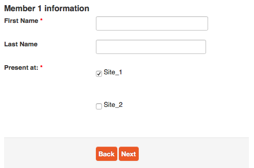 I have created a custom field "Present at:" that has two checkboxes "Site_1" and "Site_2" as values.
