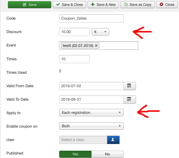 I created a coupon with fixed discount value (10 €) to be applied to Registration and not to Member (see attached file EB_coupon2). But in the list of registrants, the coupon is correctly applied to the group registration, but also to the first member of the group (see attached file EB_coupon1) which should not be.