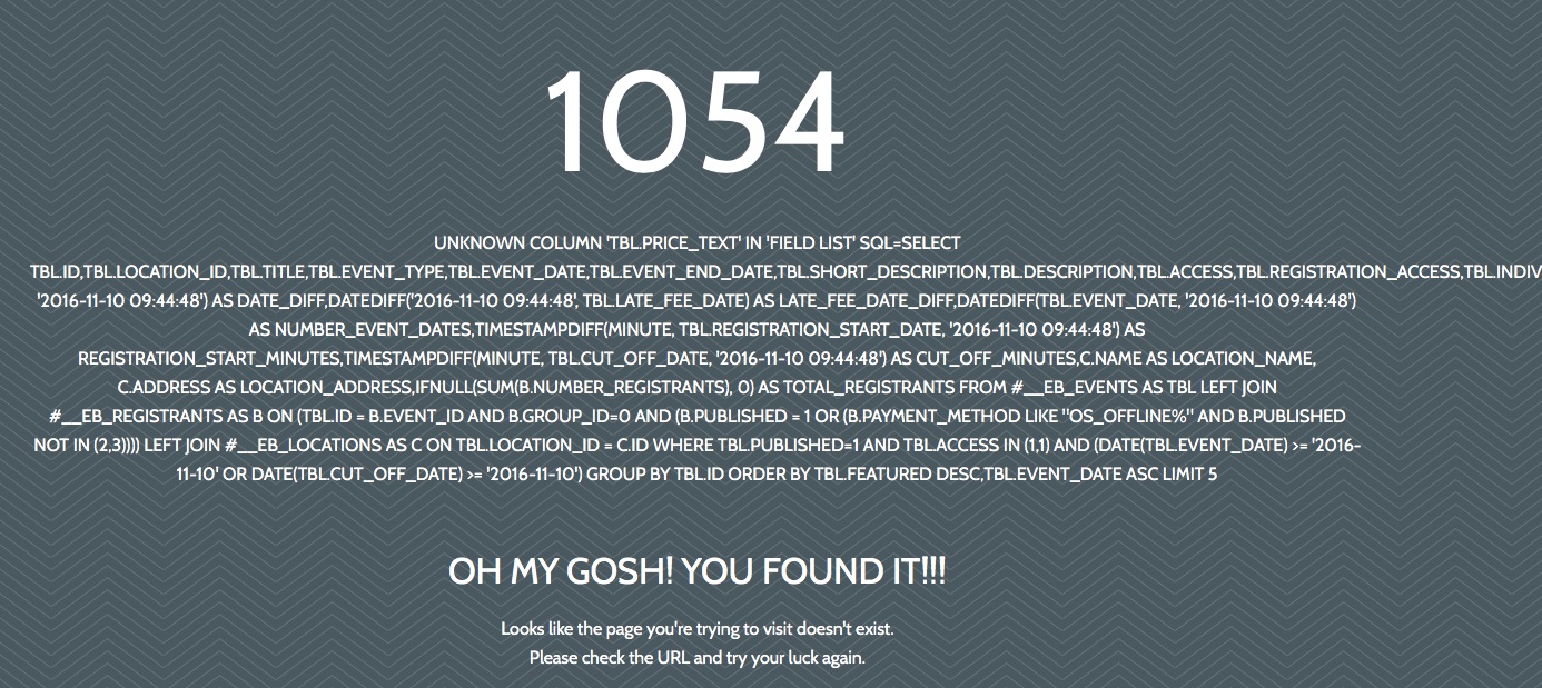 Page not found - events registration