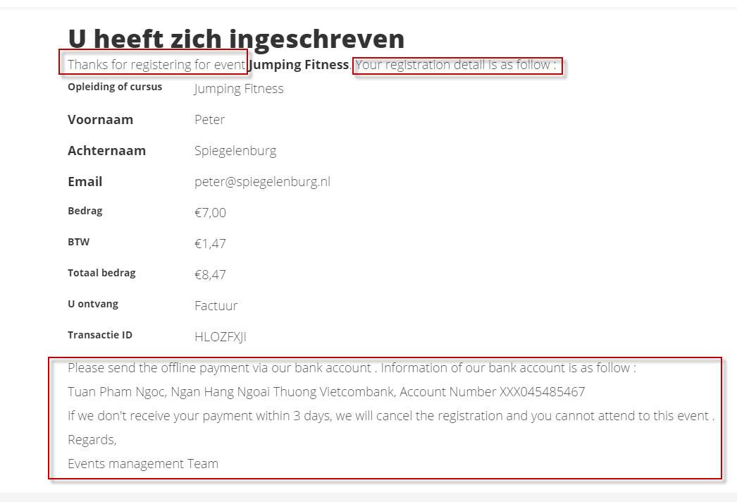 2. For long message, which can be edited using HTML editor, you can find it in Events Booking -> Emails & Messages to find and change it if needed