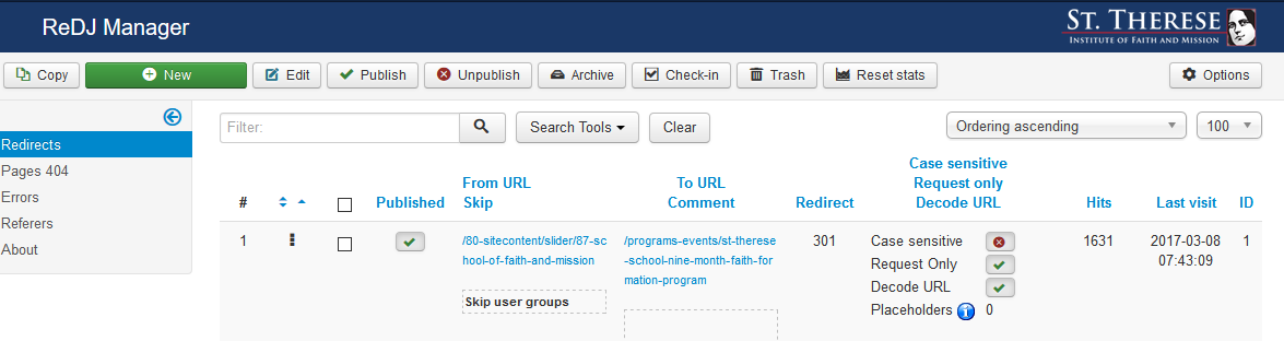 Here's a screenshot of my internal redirects on my site using ReDJ: