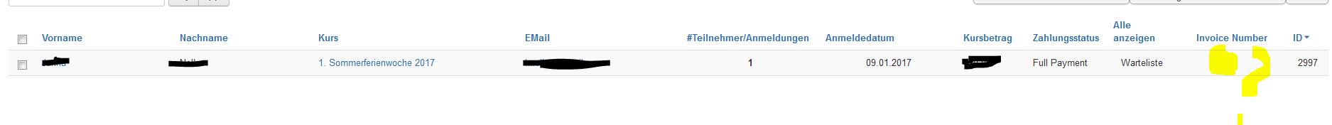 If I take over the user to the participent list (booked) also no invoice number is generated.