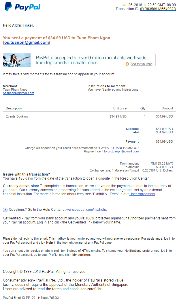 p/s: I'm attaching the paypal receipt for the transaction. Could you please double-check your records again? Thanks