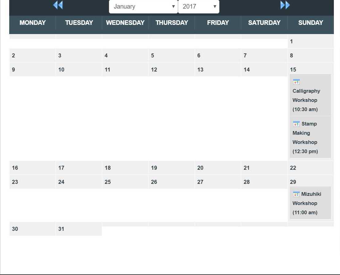 At the end of every year, I copy the previous events into the new year as we have regular monthly events and it saves time to recreate them from scratch. This year I noticed our event calendar seemed to have collapsed days ie just the heading showing. The borders separating the days are also not showing. I have attached 2 images. I upgraded to the latest version of EventBooking and the results are the same. Also the buttons for group bookings don't seem to work now. The page is displayed but the buttons don't react to anything.