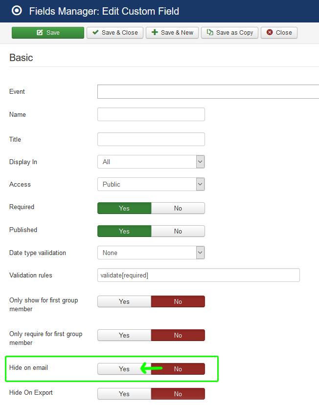After that, the field won't be included in email