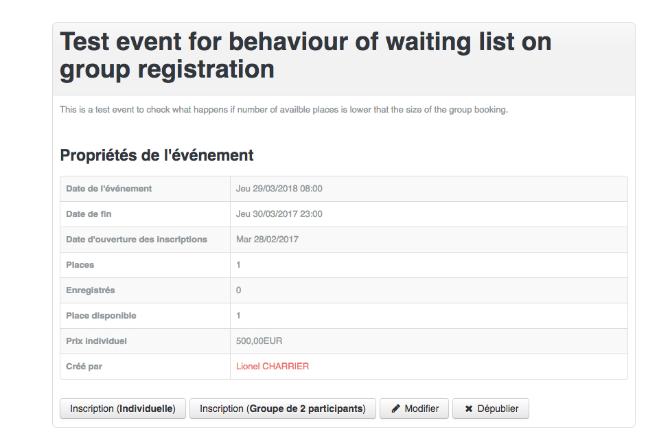 Group registration and remaining places was created by Lionel Charrier