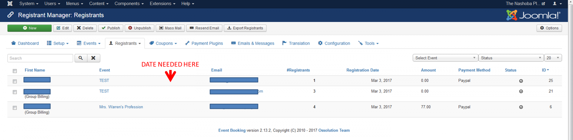 Event Date in Registrants Dashboard
