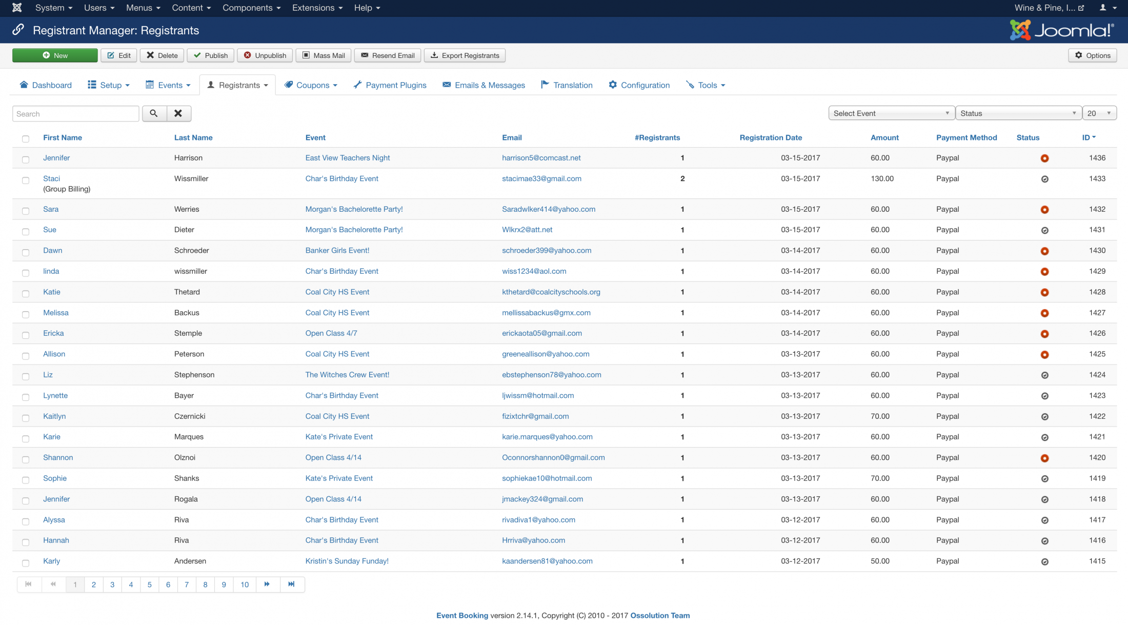 I was waiting to see if the email delay was the issue before submitting a ticket. It seems there is a delay of 2 or more days in sending confirmation emails from EB to the admin's email. I will give it a few more days to see if that fixes itself, but it does seem like we are getting all the registrations... just very late.