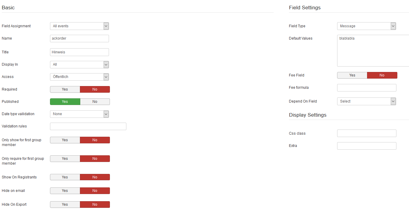 I want to use a true custom field for the first time to display a general information on every registration and/or billing page. I am able to show my field UNLESS I set the type to "message". Every other field works just fine, but message is simply not shown.