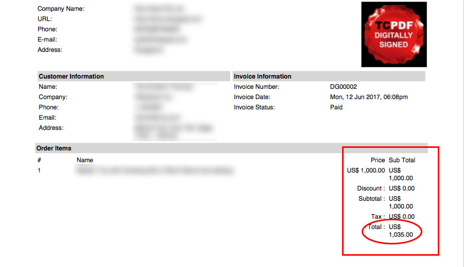 The "Total" goes magically from $1,000.00 to $1,035.00.