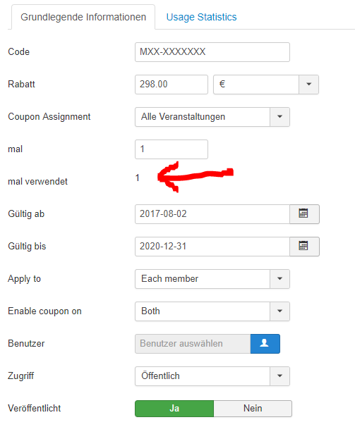 Manually set or reset how often a coupon was used