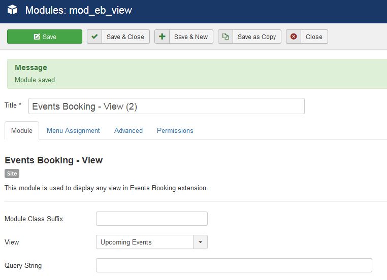 Events Booking - View - via Module