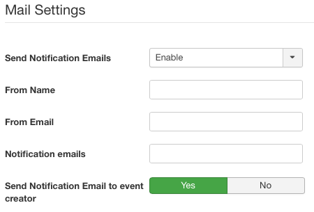 If no emails entered in Advanced Settings tab of the event, then the emails in Configuration emails will be used