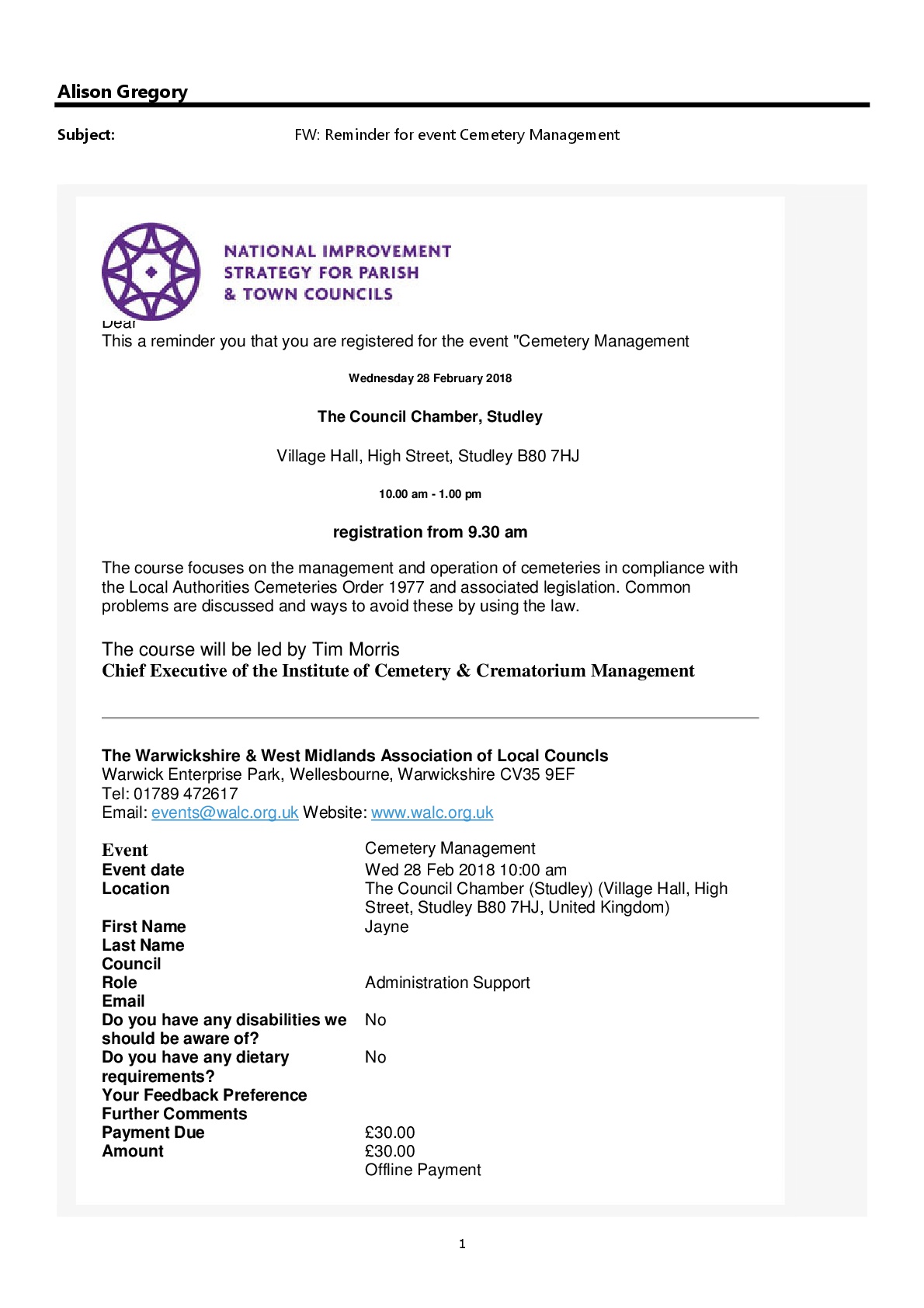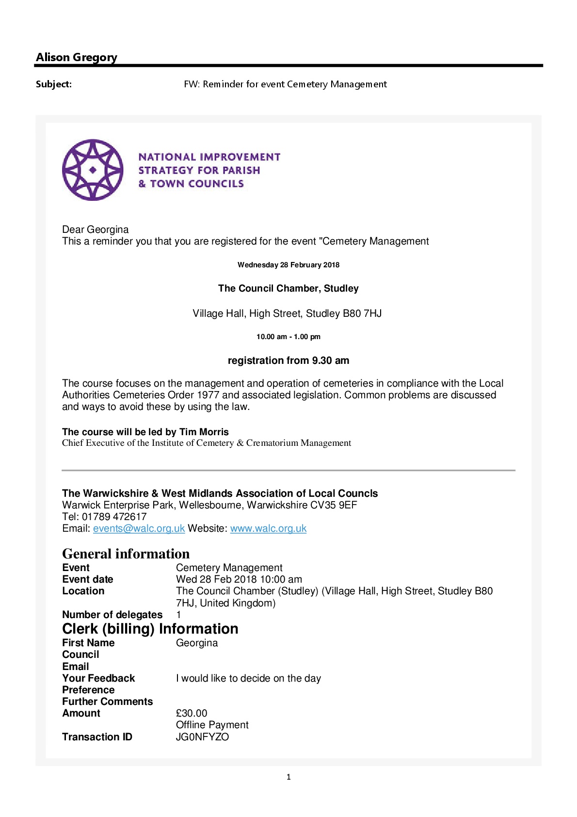 Email sent to Delegete (keep)